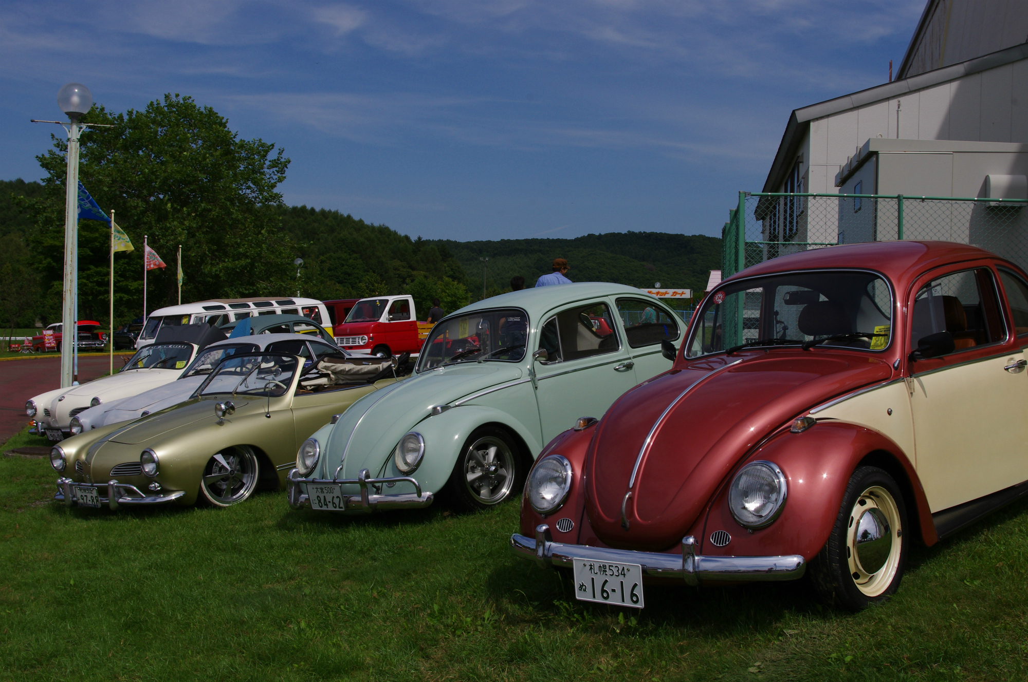 色々なアメリカ車やカスタムカー、バイクに混ざって ワーゲンたちも参加です。